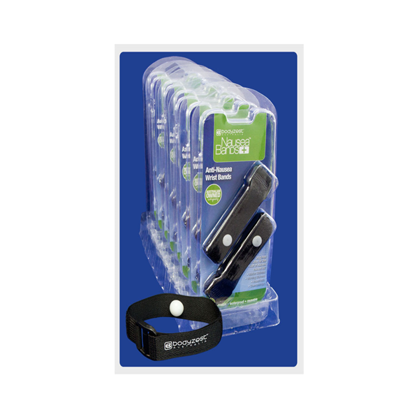 A drug free alternative for the relief of nausea caused by: Motion Sickness, Morning Sickness, Anaesthesia, Chemotherapy. Adjustable, Waterproof, Reusable